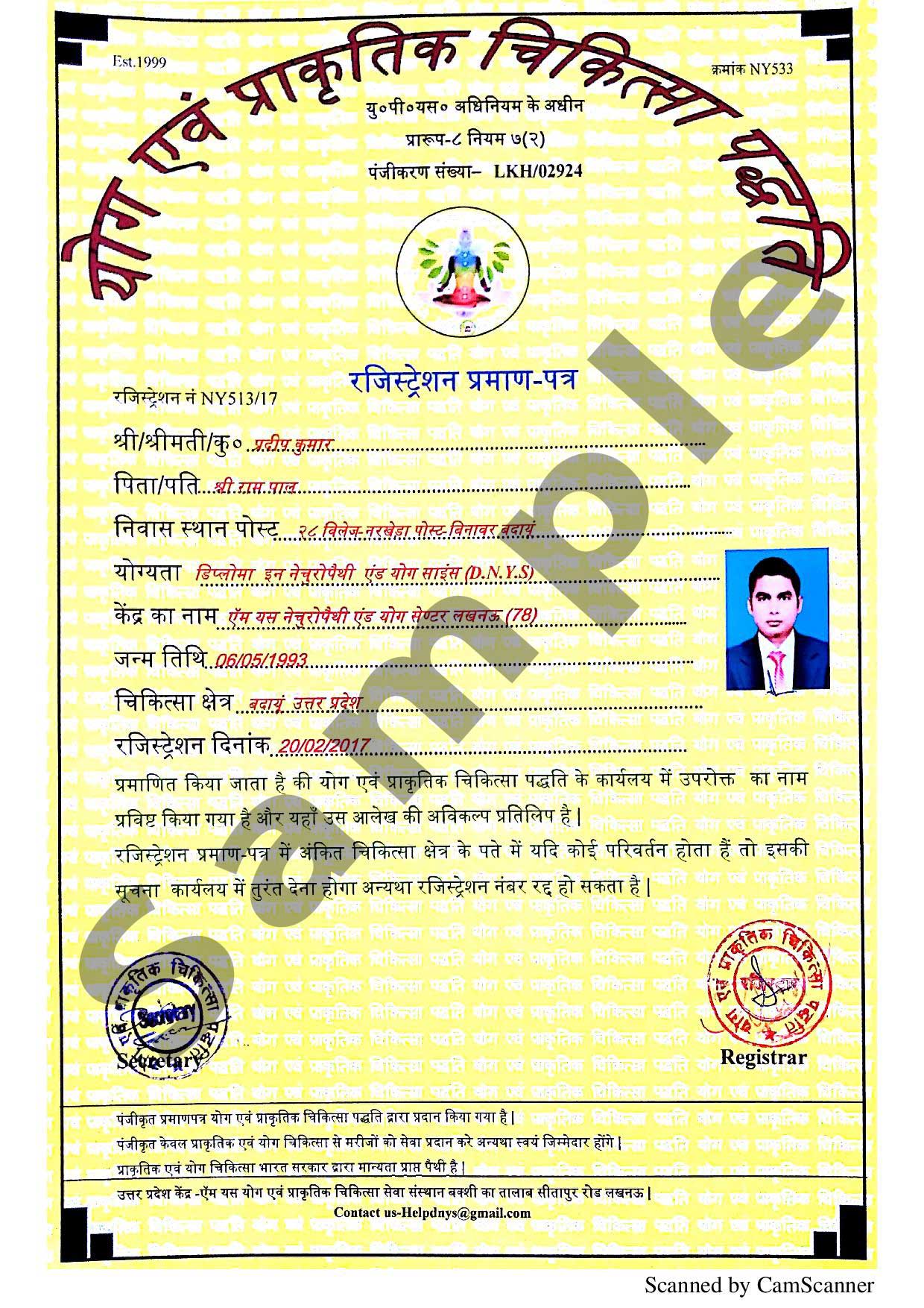 If You Want To Do Course From Recognised Institution Which Is Registered With Govt of NCT DELHI, and Registered under HRD ACT  HRD ACT/ Govt of NCT DELHI will be Mentioned on Certificate Student Can Login His Certificate No. His Name And Course Name Will Appear On Website you will Become member of Naturopathy Organization after this Course and you will also get Certificate of Naturopathy Organization and I Card Courses-fees Is Mentioned Above
